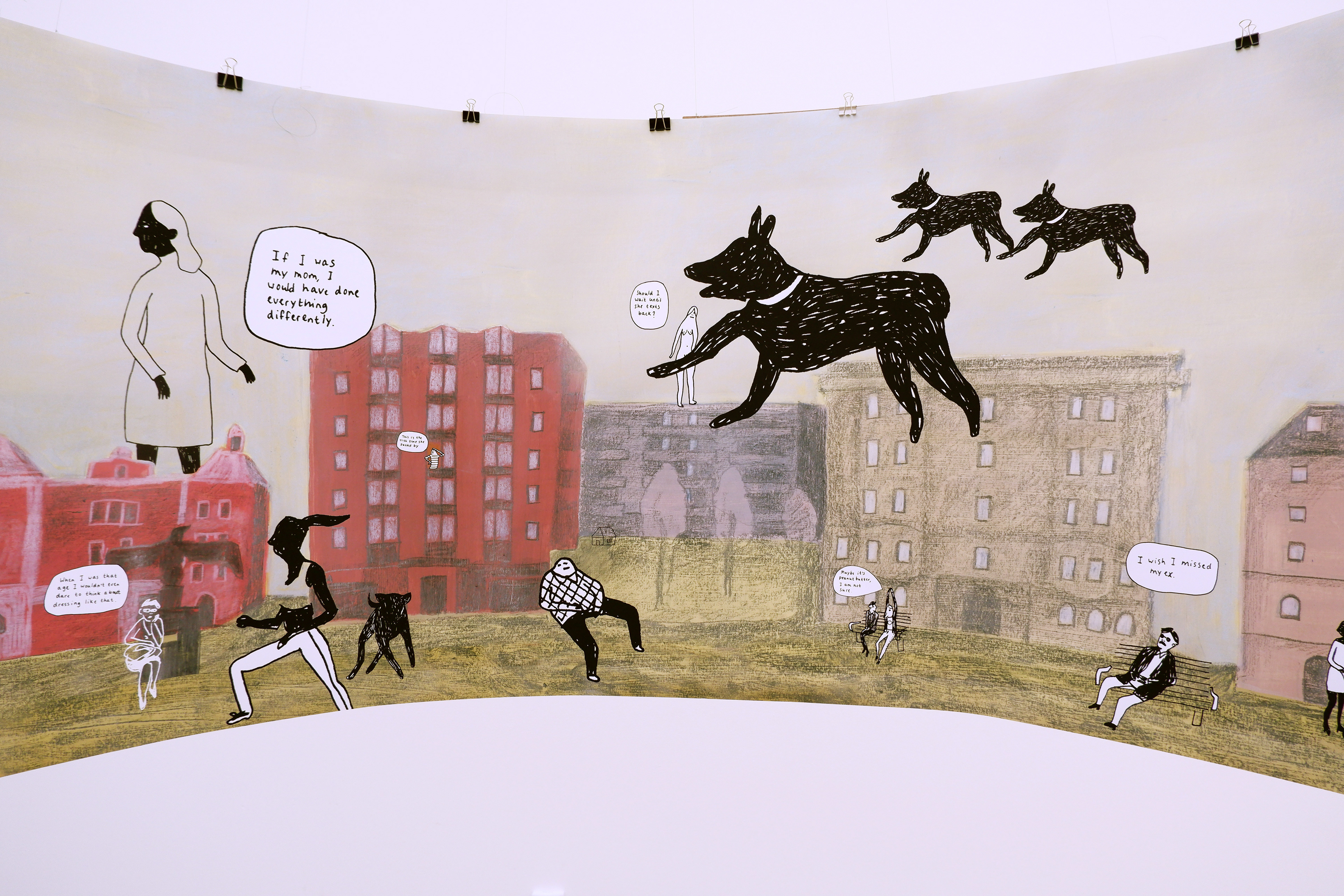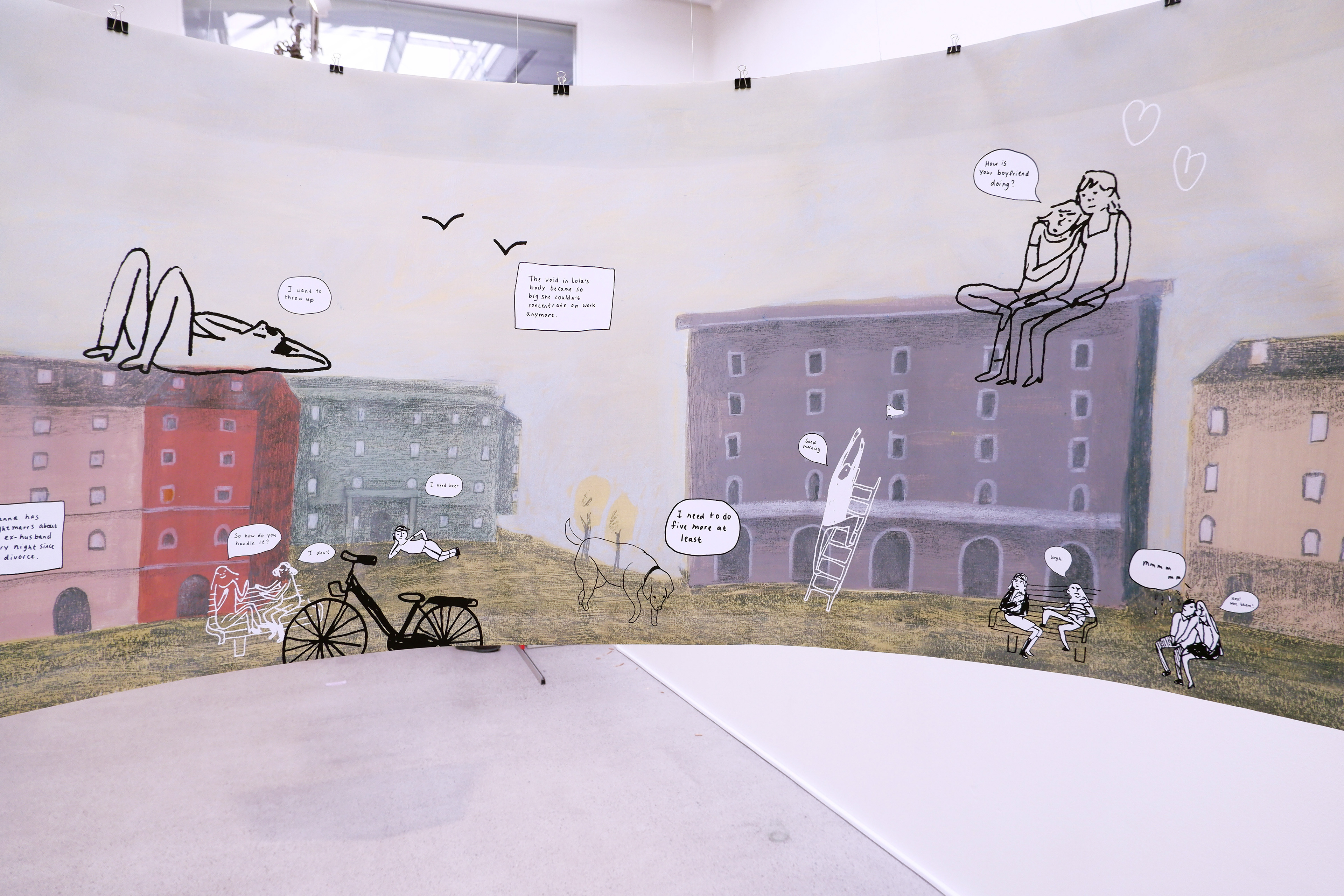 Sculptural comic about Karlaplan, a circle-shaped square located in Stockholm. Based on sketches of people having lunch around the square. Having just moved to a different country where I do not understand the language nor the culture, I tried to imagine what the people on the square where thinking of or talking about. Combining thoughts, fantasies and conversations to create a dream-like version of Karlaplan.